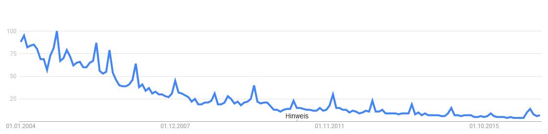 An der folgenden Grafik lässt sich der sinkende Trend der Nachfrage erkennen - lediglich zur Weihnachtszeit wird noch verstärkt nach animierten Gif Bildern im Internet gesucht.